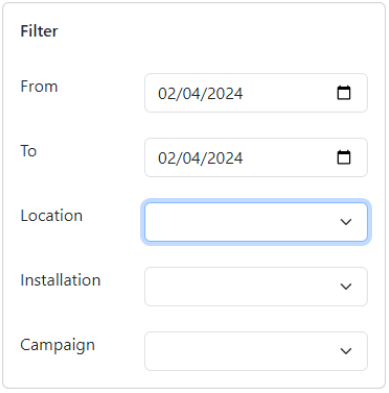 It is a panel that makes it possible to mark a time range as well as filter by Location, Installation, or Campaign.