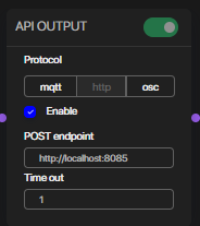 To ensure that the POST request functions properly, it is essential to configure a URL address in the Advanced Settings tool, on the API OUTPUT processor. This URL serves as the endpoint where the request will be sent. For example, you can specify a complete URL such as: http://localhost:8085