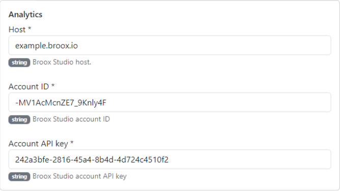 - Host: Your Broox Studio instance (without https://)